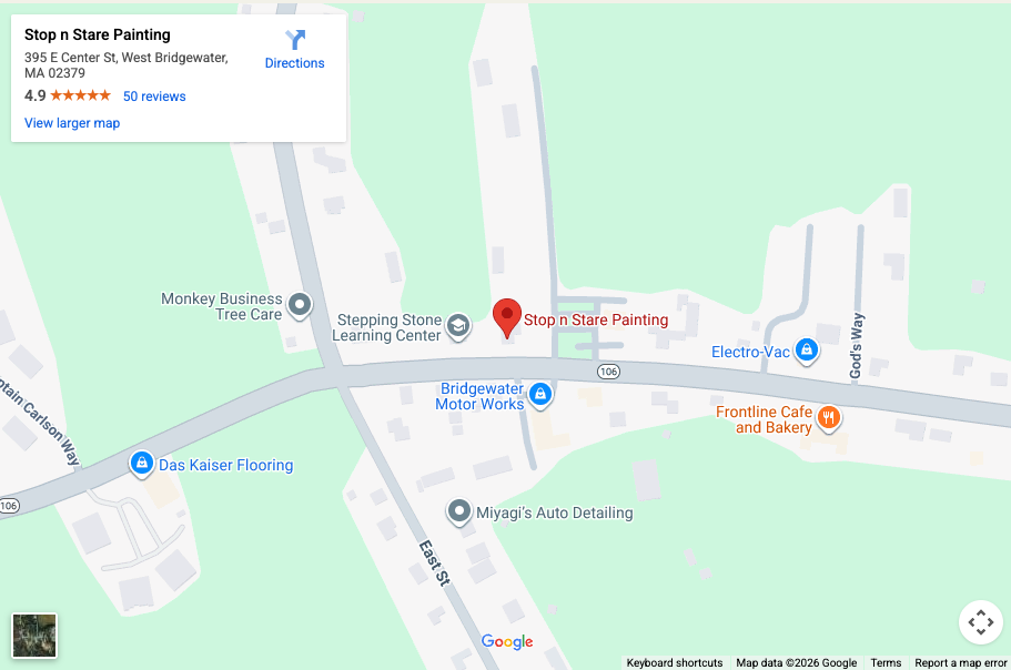 Contact Us Home Contact Us Phone +1 (339) 235-8092 Email Us StopnStarepainting@gmail.com Address 395 E Center St, West Bridgewater, MA Request a Quote or Ask a Question! Name Email Address Phone Service Type Service TypeInteriorExteriorCommercial Message Submit Now